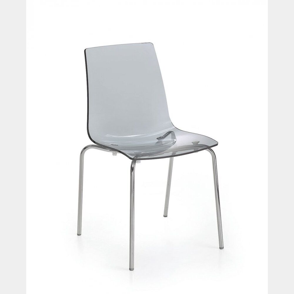 Sedia in policarbonato trasparente con struttura in acciaio cromato.