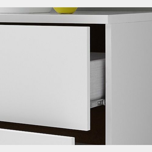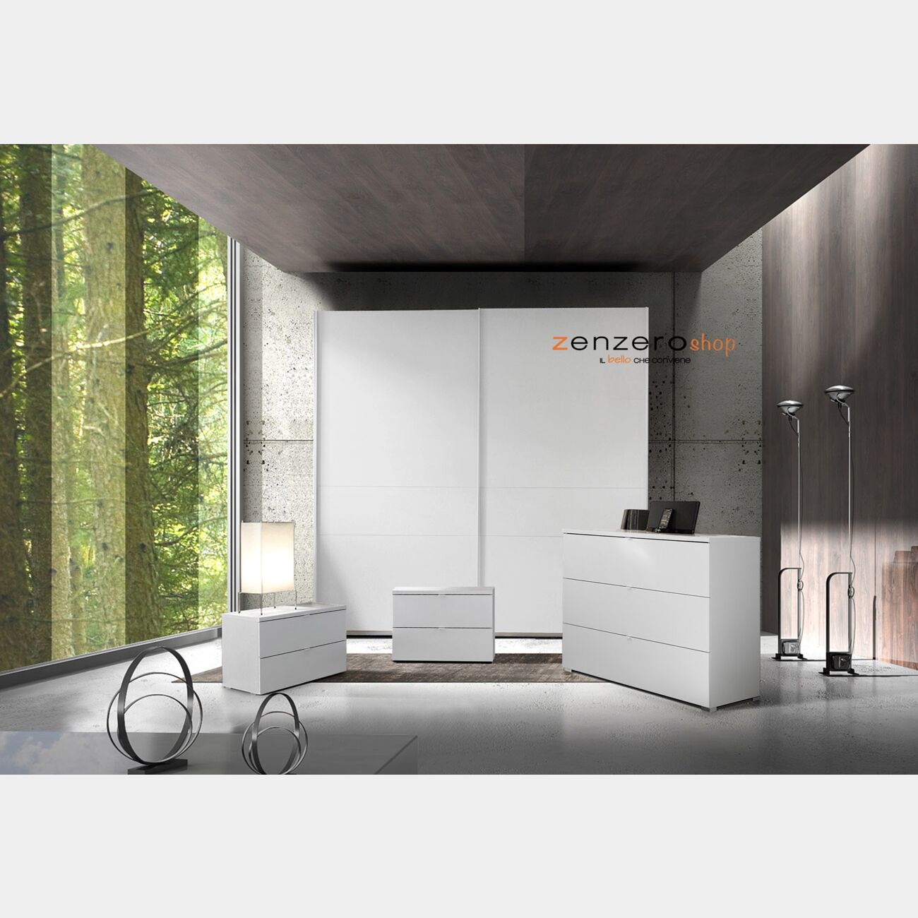 Set moderno per camera da letto, composto da: 1 Comò e 2 Comodini. Coppia di comodini 2 cassetti bianco.