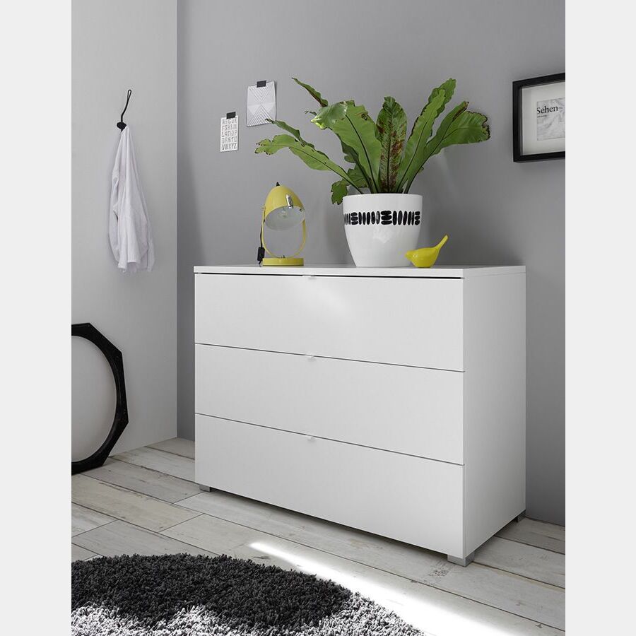 Set Comò e 2 comodini, design moderno, finitura bianco opaco