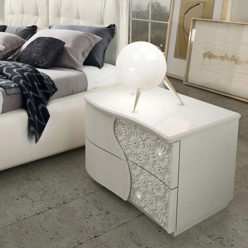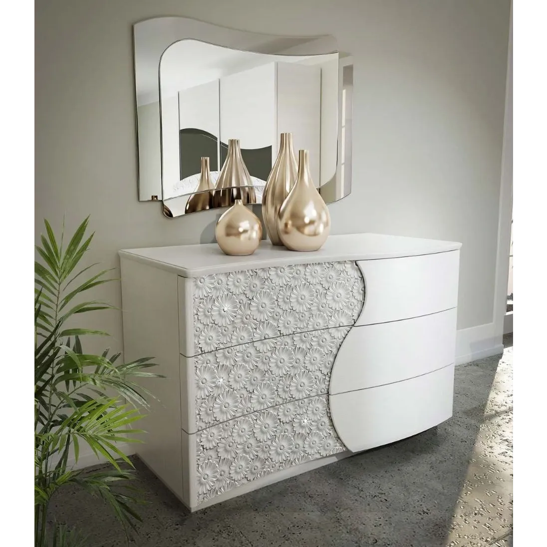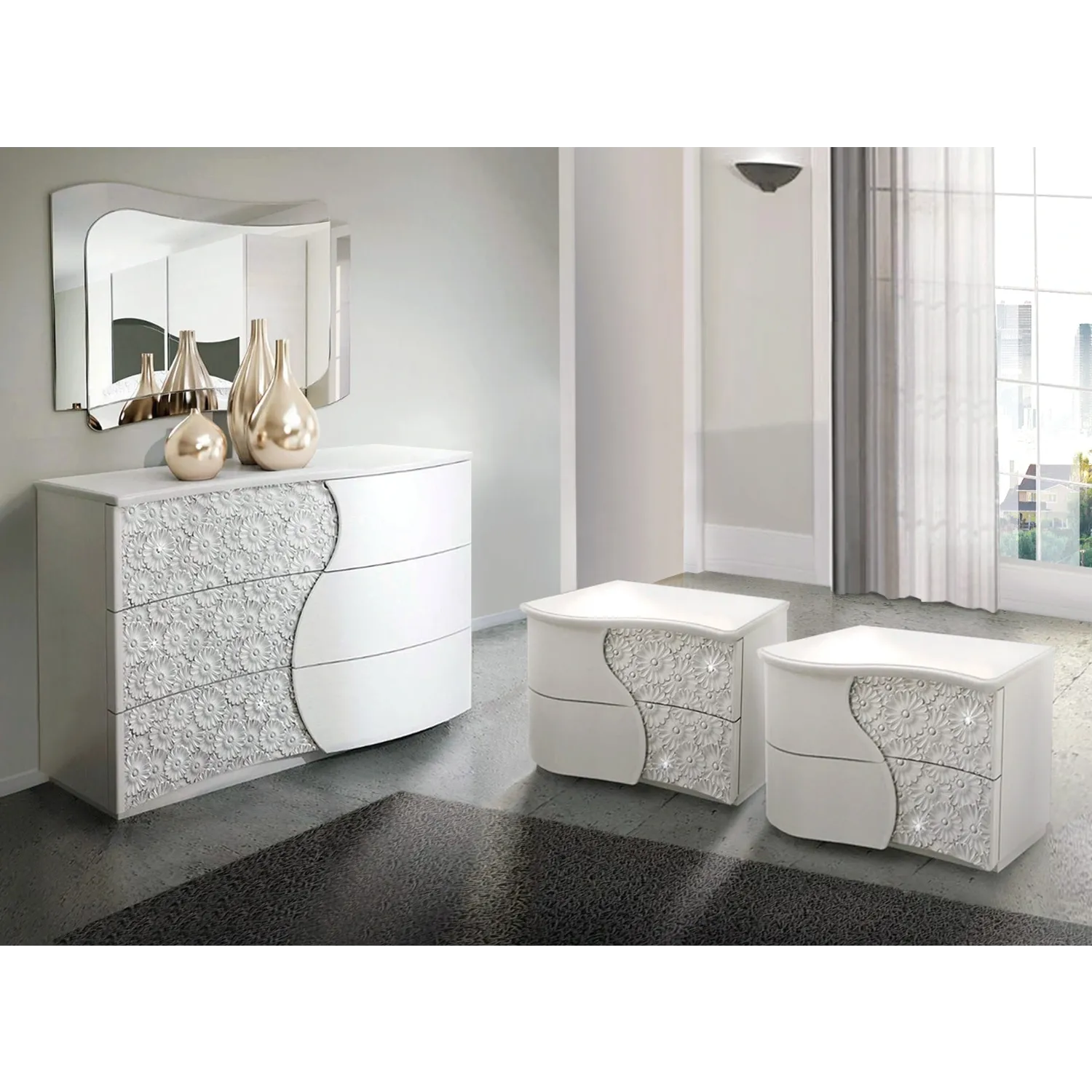 Set comò e comodini contemporanei, Bianco con inserti floreali