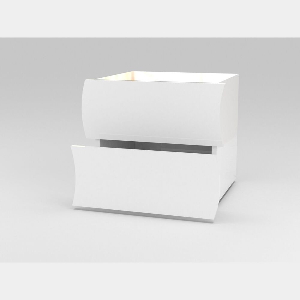 Set composto da: Comodini di design, moderni e funzionale adatti a qualsiasi tipo di camere, visto il colore neutro. Il comodino è a due cassetti e nella finitura bianco laccato lucido.