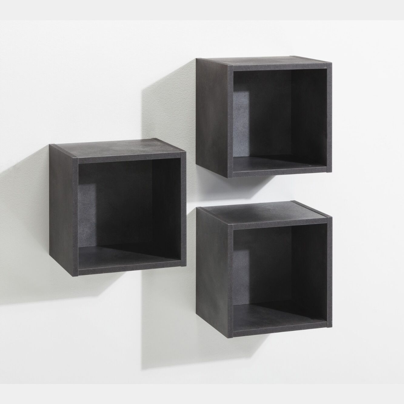 Set composto da 3 vani a giorno, dal design moderno e funzionale di colore grigio, ideali per arredare ingressi, soggiorni o camere da letto.