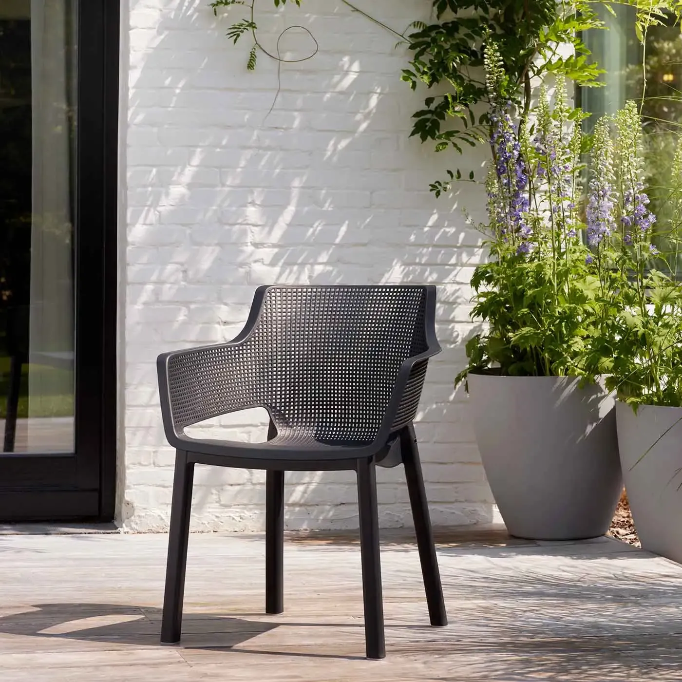 Il set da giardino definitivo per l'arredamento dei vostri esterni. Queste 6 sedie sono nfatti alcuni dei pezzi del nostro repertorio capaci di accattivare maggiormente grazie alle lineee sinuose e alla moderna quanto attraente finitura in Grafite.