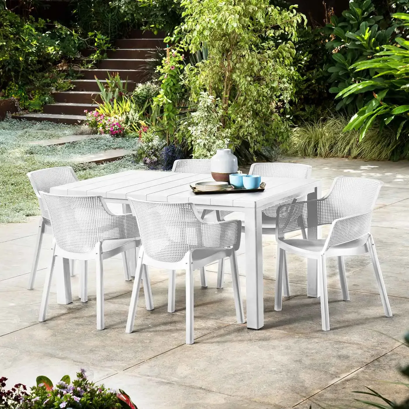 Set di 6 sedie da giardino finitura a maglia, 61x79x54 h cm, color Bianco