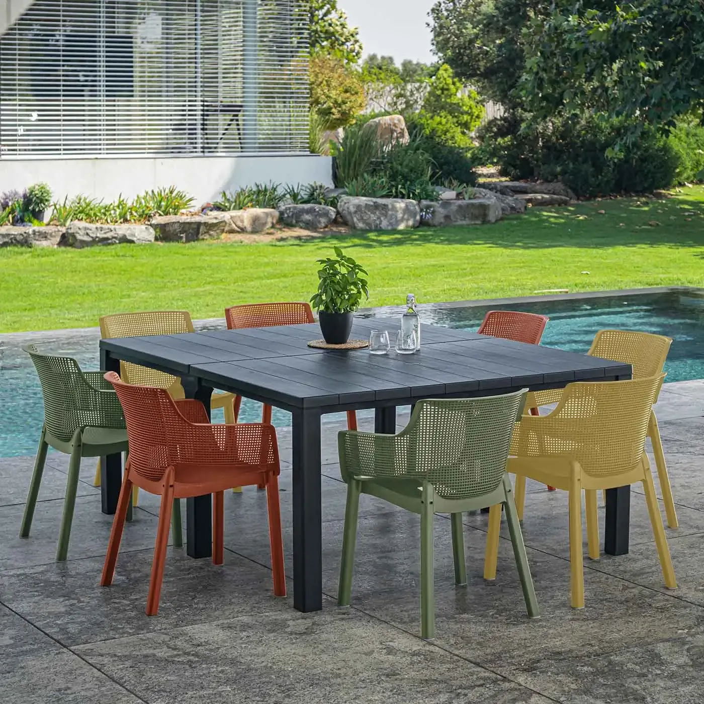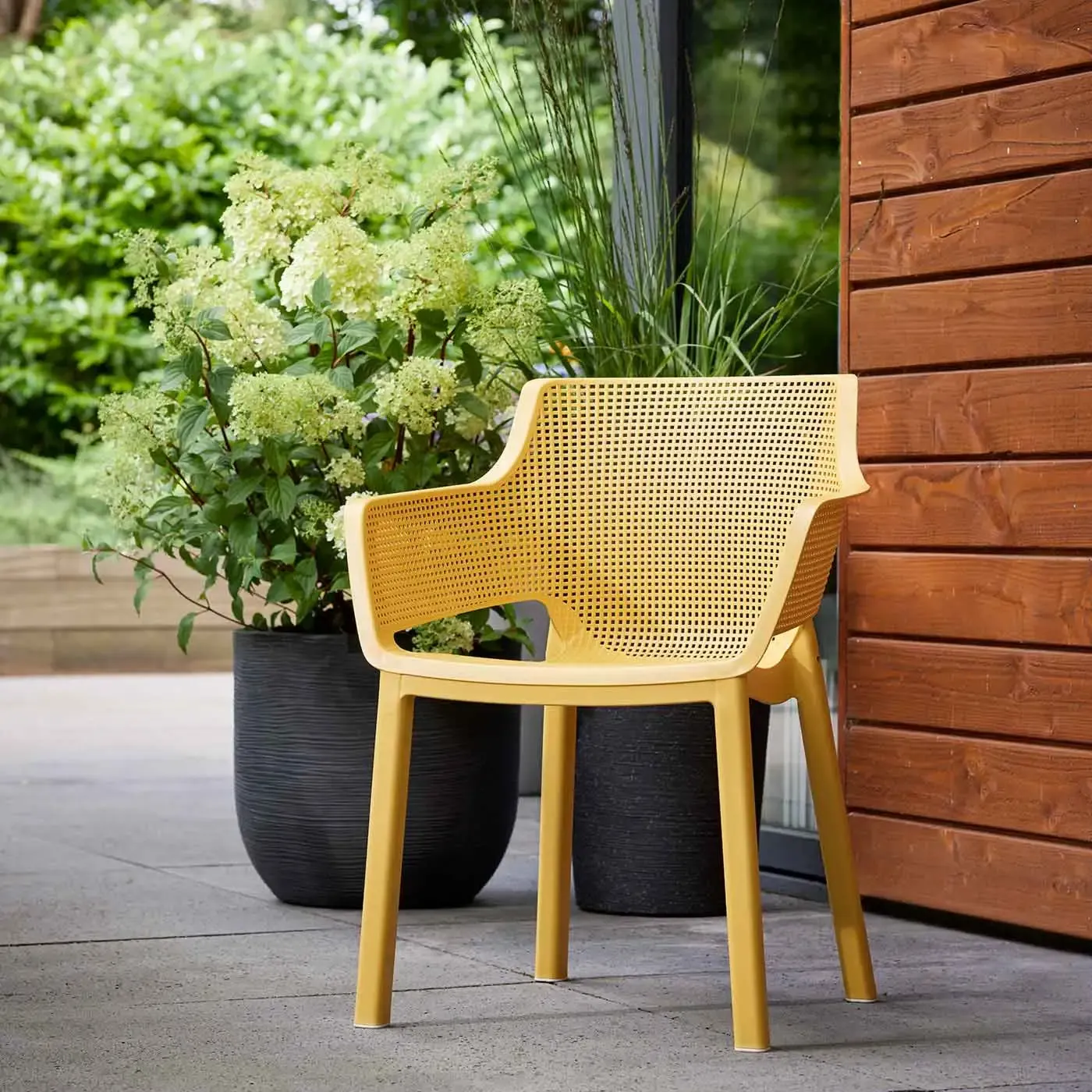 Set di 6 sedie da giardino finitura a maglia, 61x79x54 h cm, color Rosso, Verde e Giallo