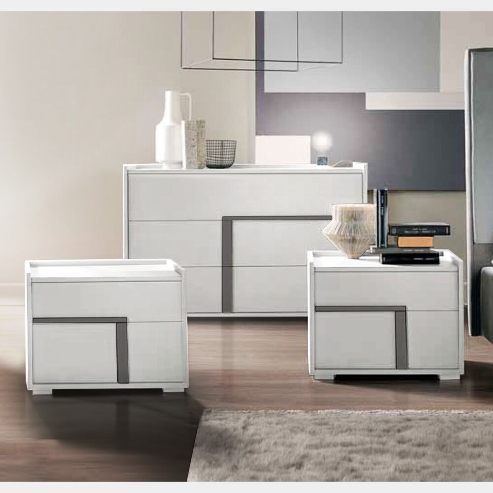 Il set è composto da un comò e una coppia di comodini. Il comò presenta 3 ampi cassetti dotati di guide in metallo con chiusura ammortizzata. I comodini invece hanno 2 cassetti ciascuno, anch'essi dotati di guide in metallo ammortizzate.