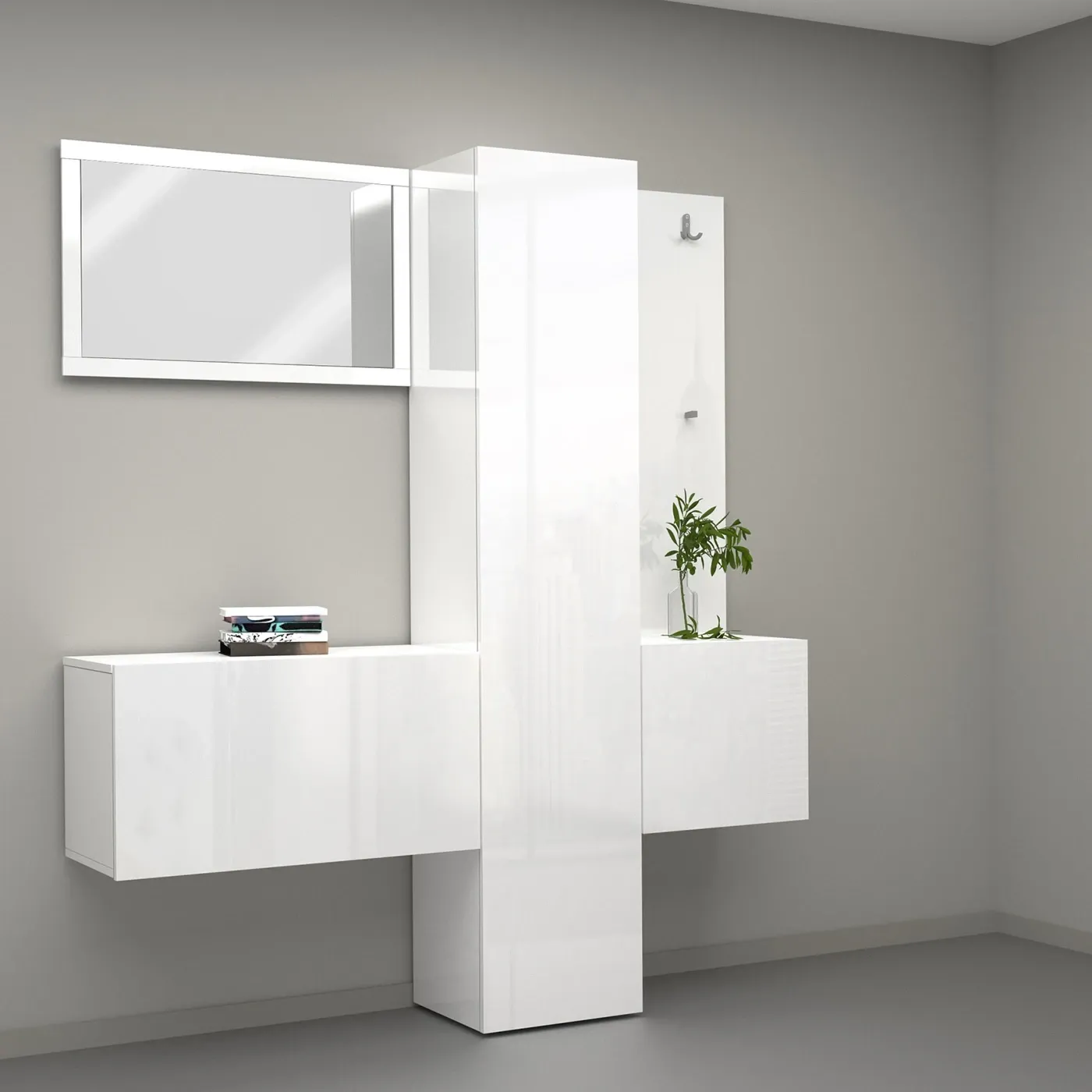 Set ingresso da 4 pezzi, 170x191x35 h cm, Bianco laccato lucido