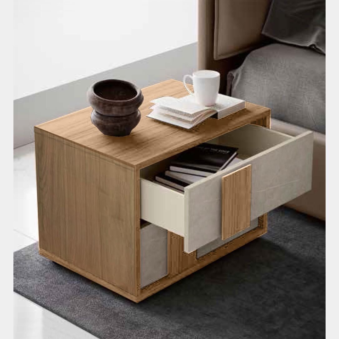 La finitura della scocca in Noce biondo illumina la camera da letto, un mix di finiture perfetto pensato per tutte le stanze moderne e raffinate.
