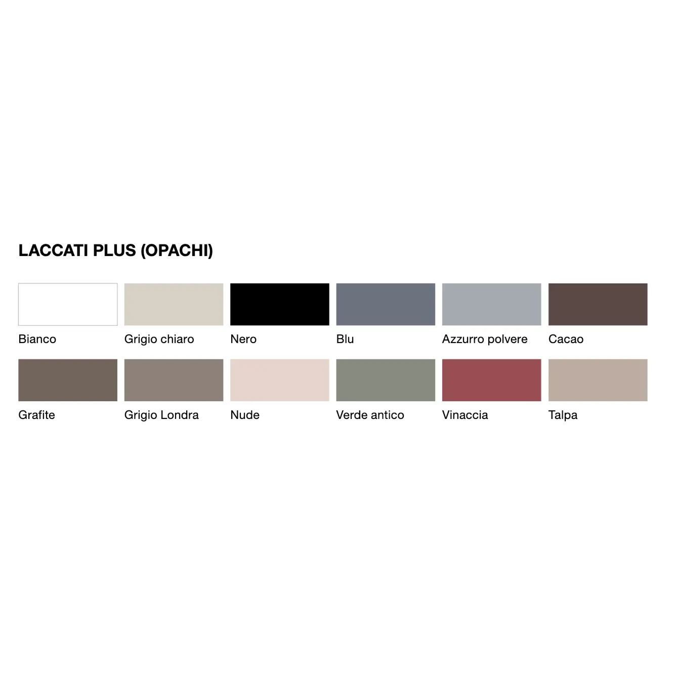 Possibilità di scegliere tra i colori disponibili dei frontali e scocca: Orzo, Visone, Grigio cenere, Grigio seta, Agave, Petrolio, bianco opaco, blu avio e giallo grano
