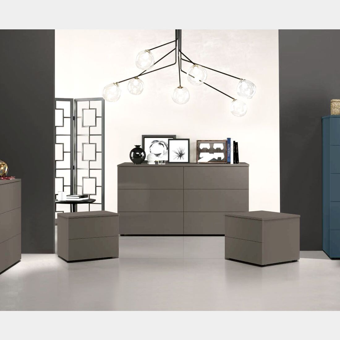 Per completare l’arredo della tua camera da letto abbiamo pensato a un programma di complementi che rendano davvero unica la tua zona notte. Oltre alla funzione estetica, abbiamo pensato a quella pratica e contenitiva, studiando una selezione di comò, comodini e settimini integrati in un progetto dove forme e colori sono i veri protagonisti del design del tuo ambiente. La proposta per la zona notte, comprende una coppia di comodini a 2 cassetti e un comò 6 cassetti, entrambi in finitura Grigio Cenere.