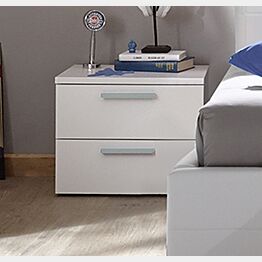 I comodini misurano L.51 H.42 P.39 cm, hanno il top con spessore 22 mm e piedini in alluminio pvc. La scocca e cassetti sono in finitura bianco opaco.