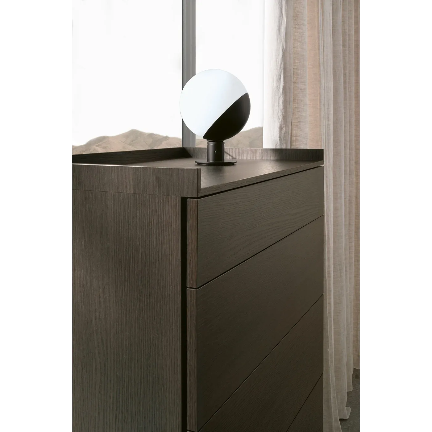 Nel settimanale, come negli altri contenitori, il top a vassoio imprime un’inconfondibile impronta stilistica. La finitura in materico rovere moka esalta la raffinatezza dell’arredo che viene trasmessa a tutto l’ambiente.