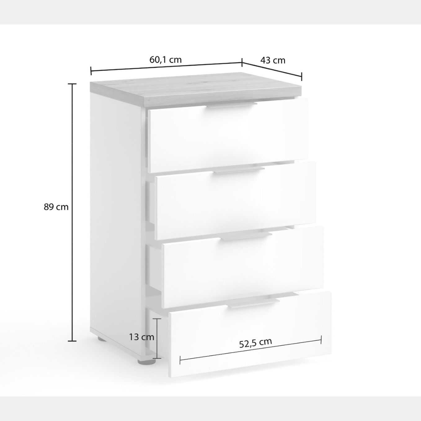 Questo mobile è dotato di quattro cassetti perfetti per riordinare oggetti di uso quotidiano grazie alla loro capienza interna.