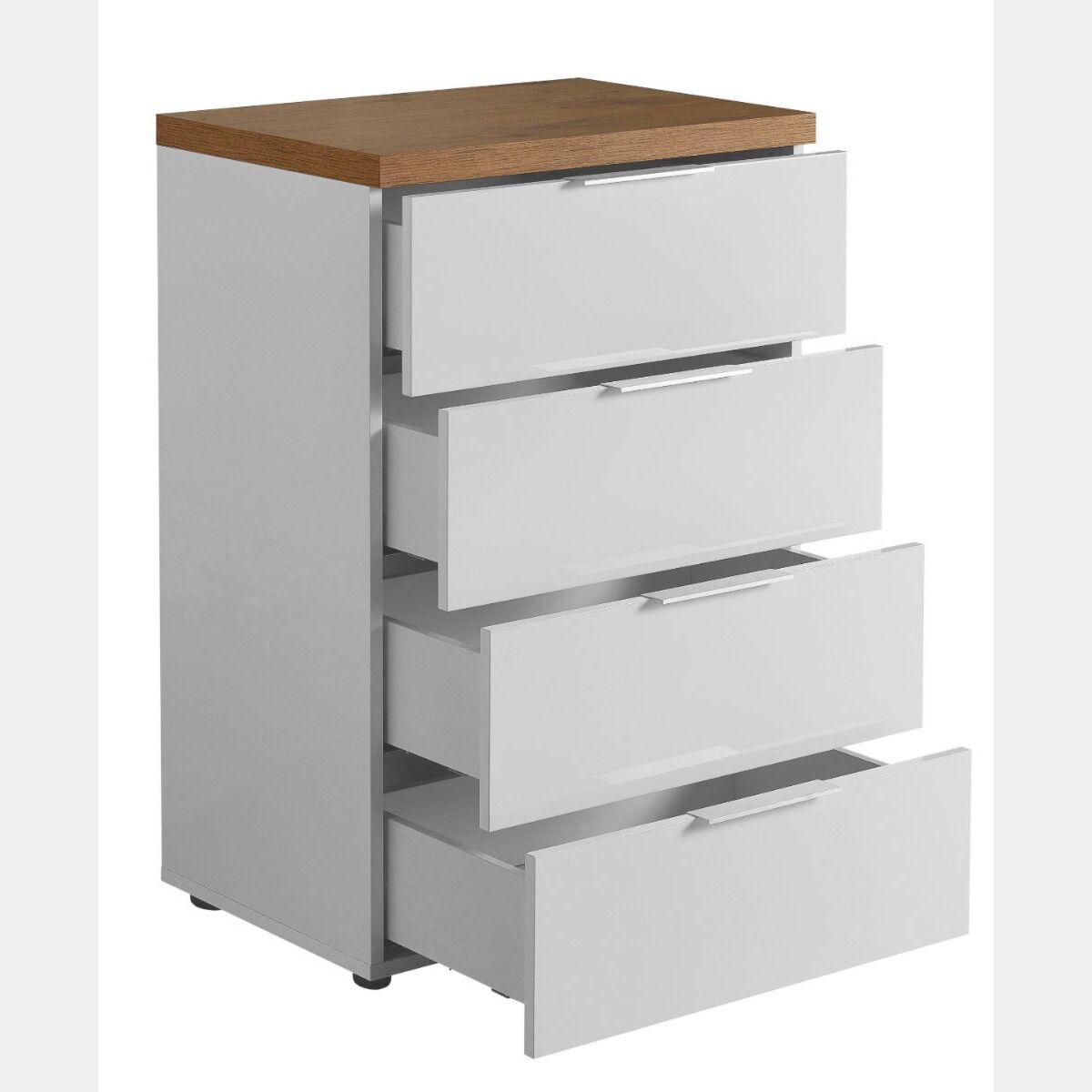 Settimino 4 cassetti finitura Bianco lucido e Castagno, Made in Italy