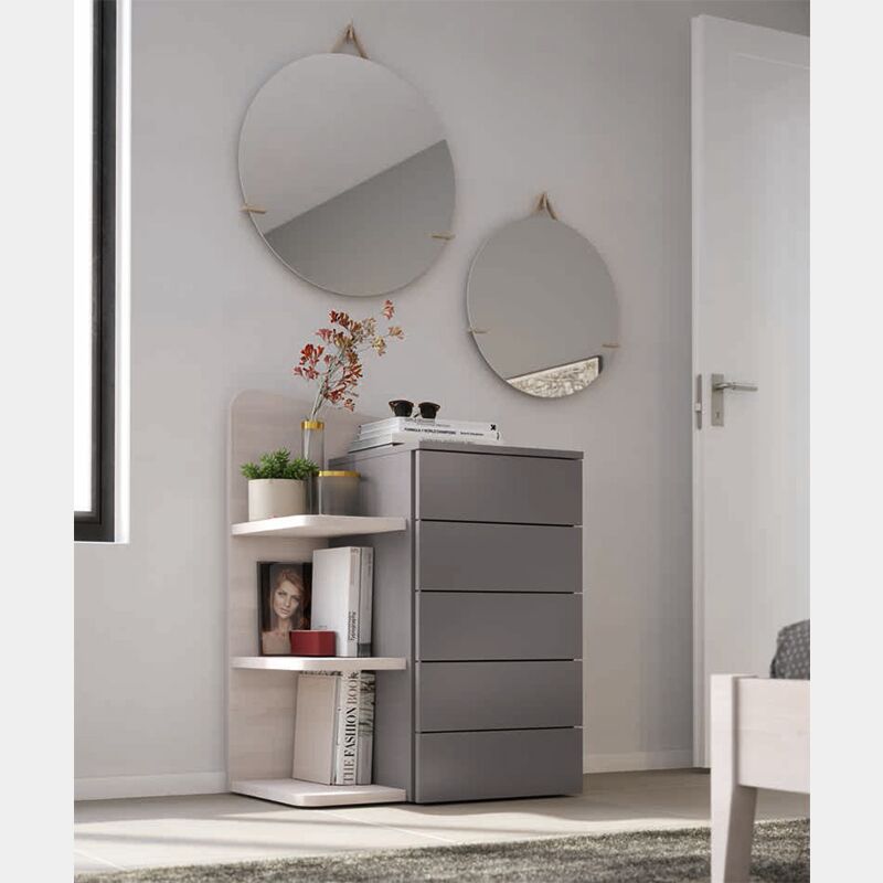 Settimino 5 cassetti e mensole, finitura Ciliegio bianco e Grigio titanio