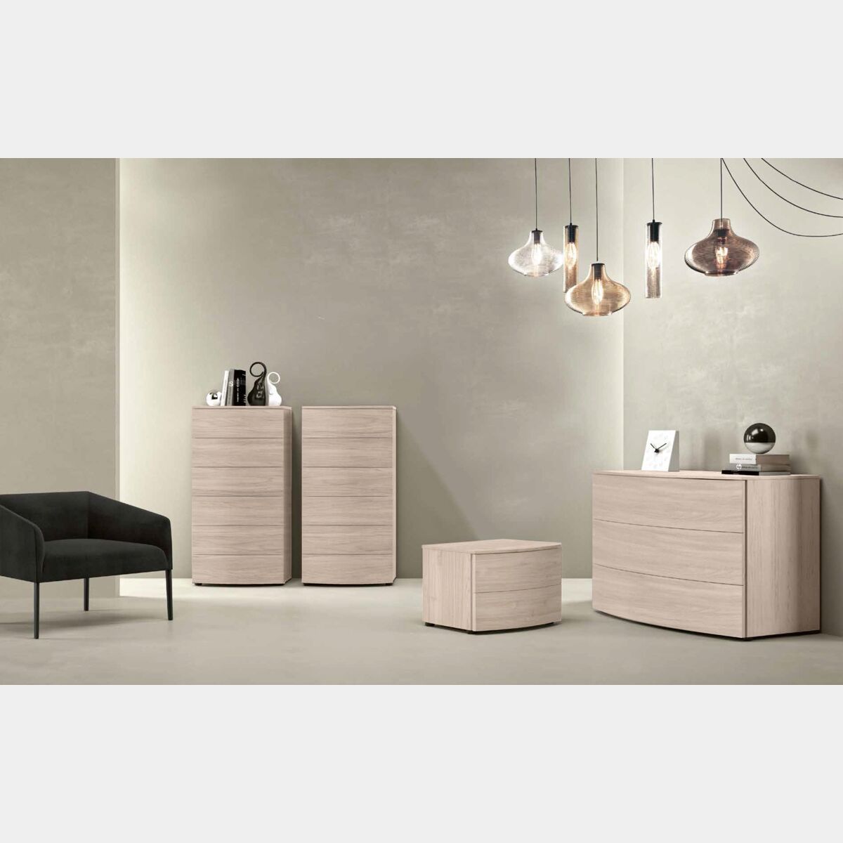 Linee morbide e finiture neutre caratterizzano il settimino per consentire una perfetta adattabilità a diversi contesti e stili, mantenendo sempre una linea elegante e ben definita.