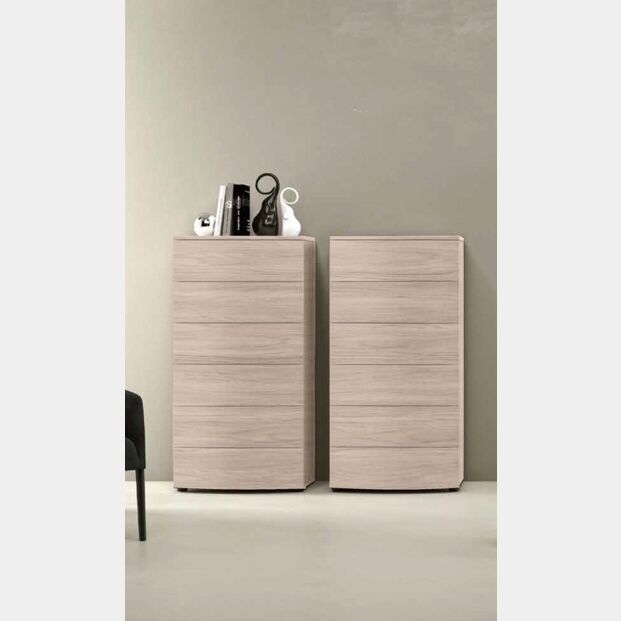 Il suo design assicura calore e carattere alla camera per rendere la tua stanza un perfetto equilibrio tra praticità ed estetica. La delicata finitura materica, l'Olmo natura, armonizza il settimino con l'ambiente e consente un perfetto inserimento nel contesto, a disposizione vi sono altre finiture materiche come il Bianco altea, il Noce biondo oppure il Noce moro. Sono inoltre disponibili due finiture laccate: il Bianco lucido e l'Opaco. Qualità e convenienza si fondono per dare vita ad prodotto in grado di offrire un arredamento moderno e di grande tendenza.