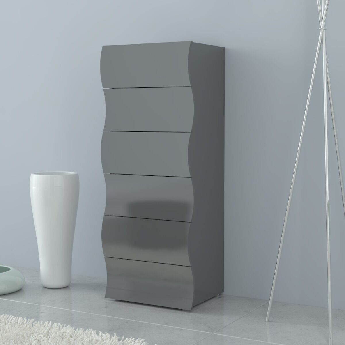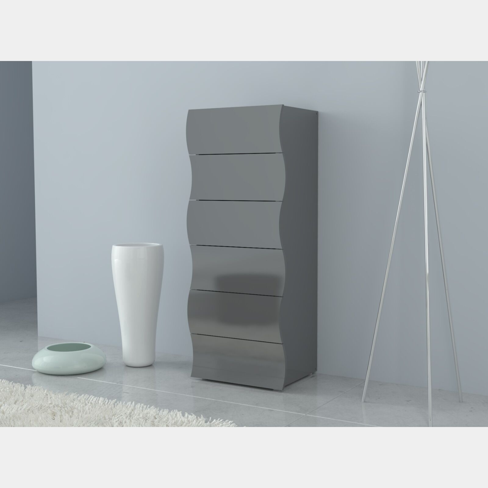 La cassettiera è a 6 cassetti e nella finitura antracite laccato lucido.