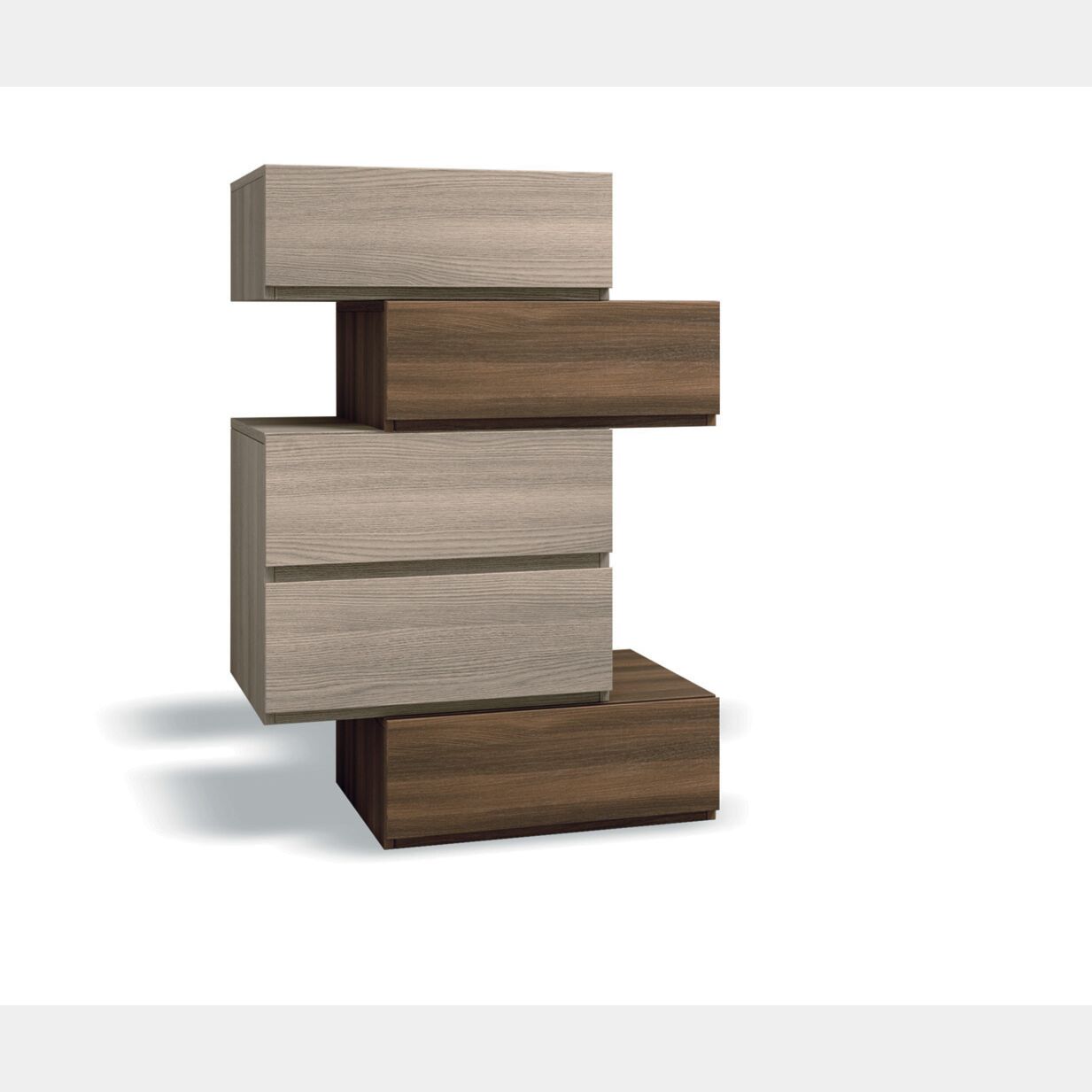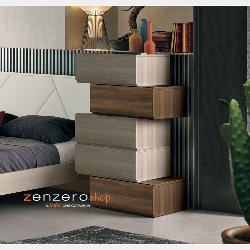 Settimino Bicolor particolare con 5 cassetti sfalsati di alta qualità in Olmo e Quercia brown