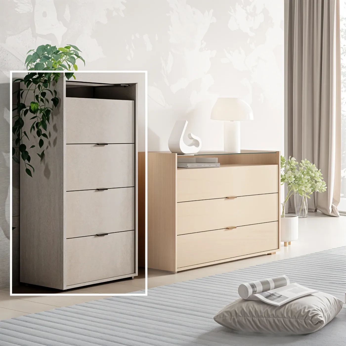 Il settimino è composto da 5 cassetti. Questa struttura permette di sfruttare al meglio lo spazio verticale, offrendo una notevole capacità contenitiva in un ingombro ridotto.