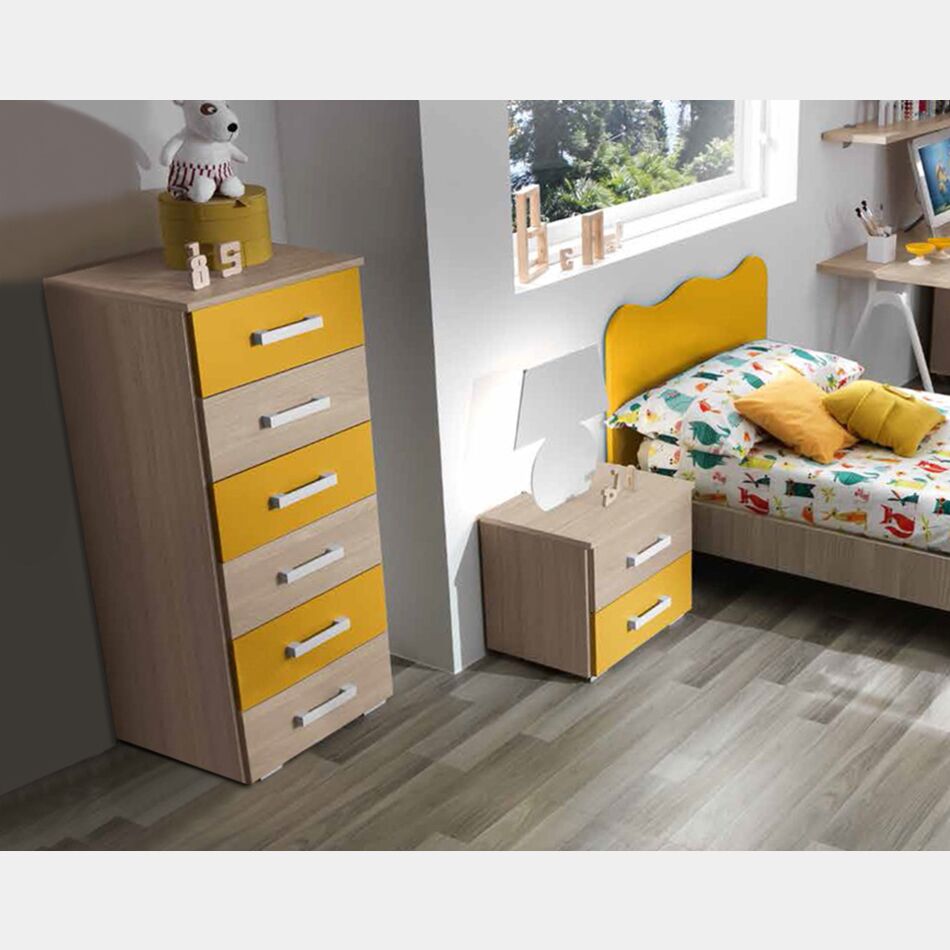 Settimino moderno 6 cassetti per camerette, olmo e giallo