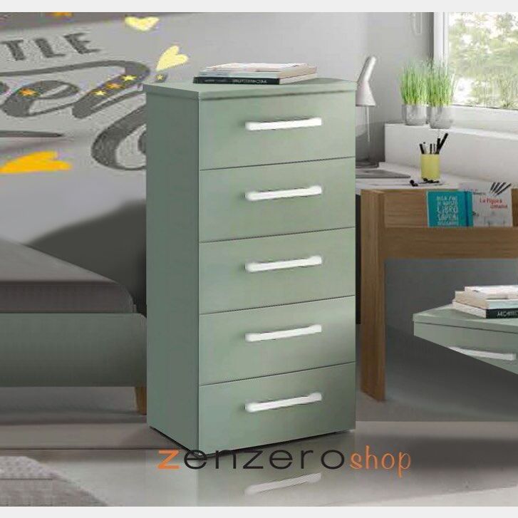 L'arredo moderno proposto da Zenzero Shop è un Settimino 5 cassetti della Collezione POP. Il settimino pensato per arredare le camerette dei vostri figli, ha una finitura neutra come l'Agave. Il design del mobile unisce qualità e comodità Made in Italy. Il settimino con piedino di serie H. 2 cm ha 5 pratici cassettoni H. 25,1 cm in cui poter riporre i vari capi ed oggetti. L'arredo notte per camere e camerette è un made in italy realizzato interamente con particelle legnose classe E1, spessori 14 - 25 mm. La ferramenta varia è in metallo.