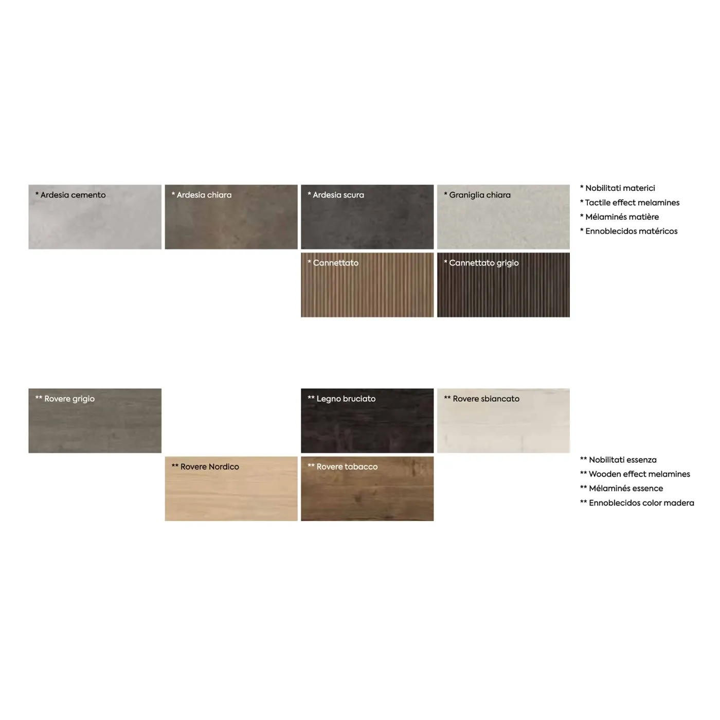 L'ampia gamma di finiture disponibili consente di creare accostamenti che ben si adattano al proprio ambiente, per assicurarsi un complemento d'arredo che rientri nei propri gusti e arredo.
