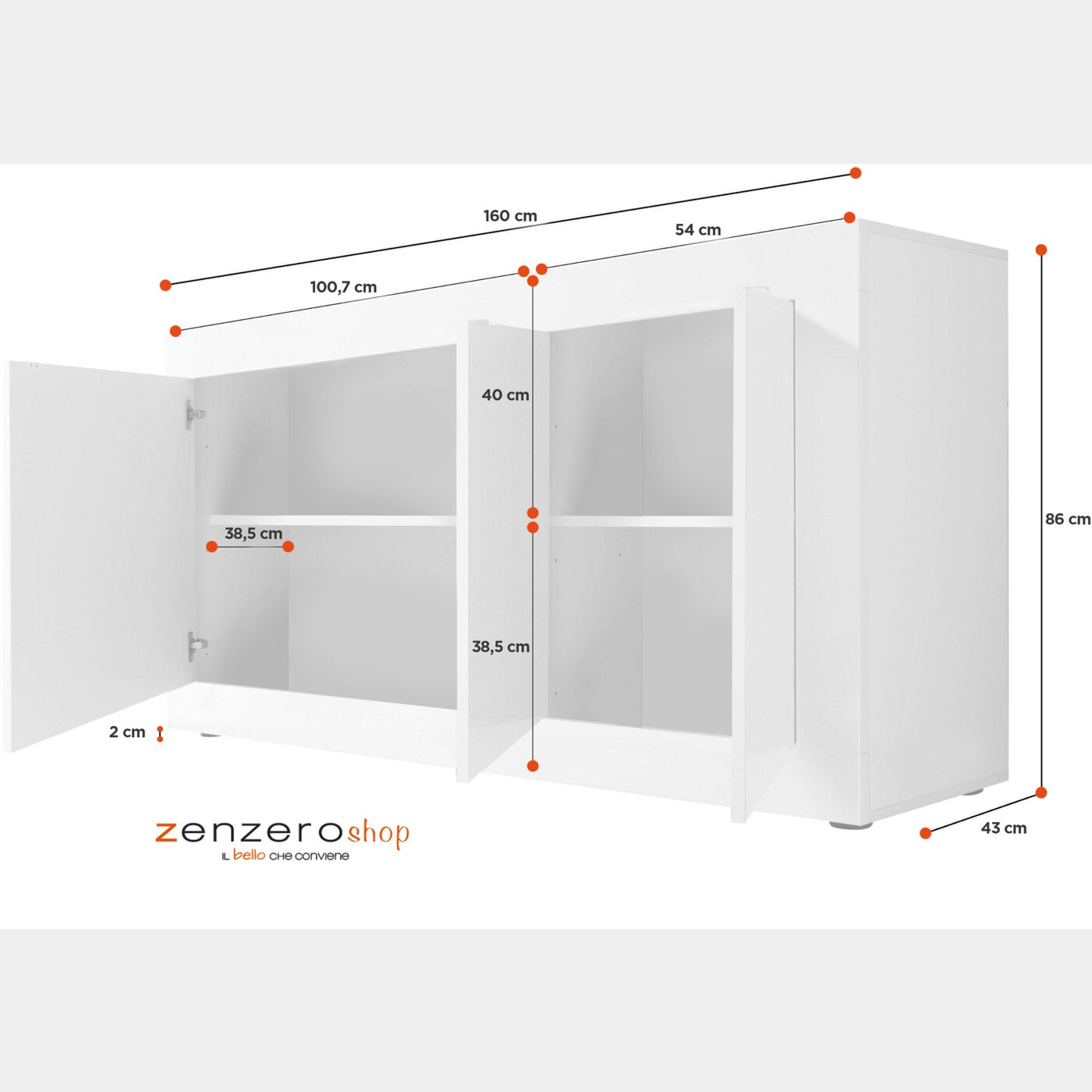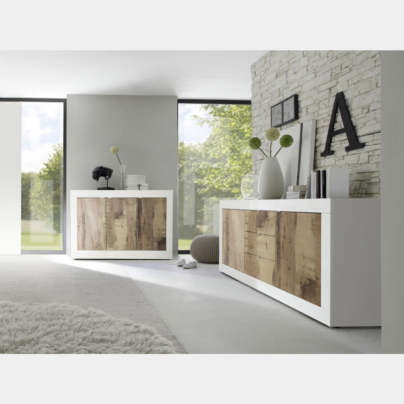 Soggiorno bianco lucido e Pero con Madia 3 ante e Madia 2 ante 3 cassetti