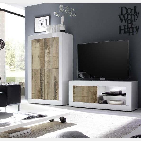 Soggiorno completo "Beta", solo come in foto, in Bianco laccato lucido e Pero, composto da Madia Alta, Porta TV.