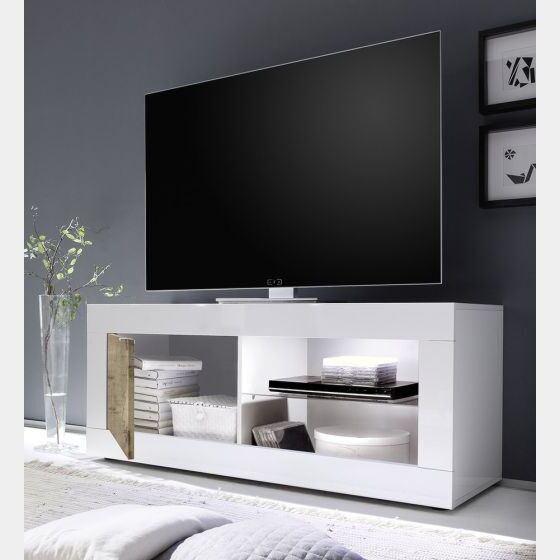 - Porta TV "Beta" moderna e di design, realizzata in melaminico e con una finitura legno di alta qualità, questo porta tv dalla linea moderna e attuale viene proposto con una finitura in pregiata laccatura bianco lucido e Pero.Molto spazioso e capiente, grazie all'ampia dimensione di profondità, può contenere anche oggetti di grandi dimensioni.Presenta 1 ante in legno sul lato sinistro e due ampie zone a giorno al a destra divise da un ripiano in vetro dove poter riporre decoder, dvd, telecomandi, ecc.