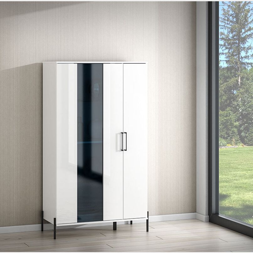 Presenta un'anta in vetro con 3 ripiani in vetro e 2 in legno. Questa suddivisione interna dello spazio assicura un'ampia capienza per piatti, bicchieri e tutti i complementi d'arredo di cucina e soggiorno.