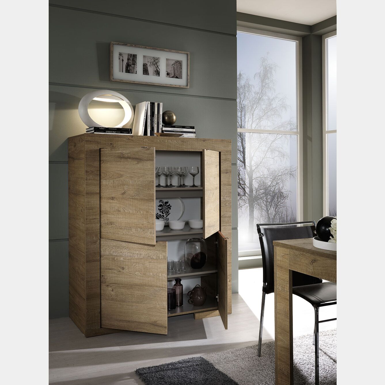 - Madia moderna e di design, linee pulite, ampie e robuste superfici, un'elegante finitura rovere miele, sono le caratteristiche principali di questa madia non solo utile ma esteticamente sorprendete, dotata di vano a giorno.Madia dotata di quattro porte lavorate con geometriche forme per creare un movimento sinuoso sul frontale: all'interno di ogni sportello vi è un ripiano che divide lo spazio in due parti in modo da sfruttare al meglio lo spazio e avere sempre tutto in ordine.