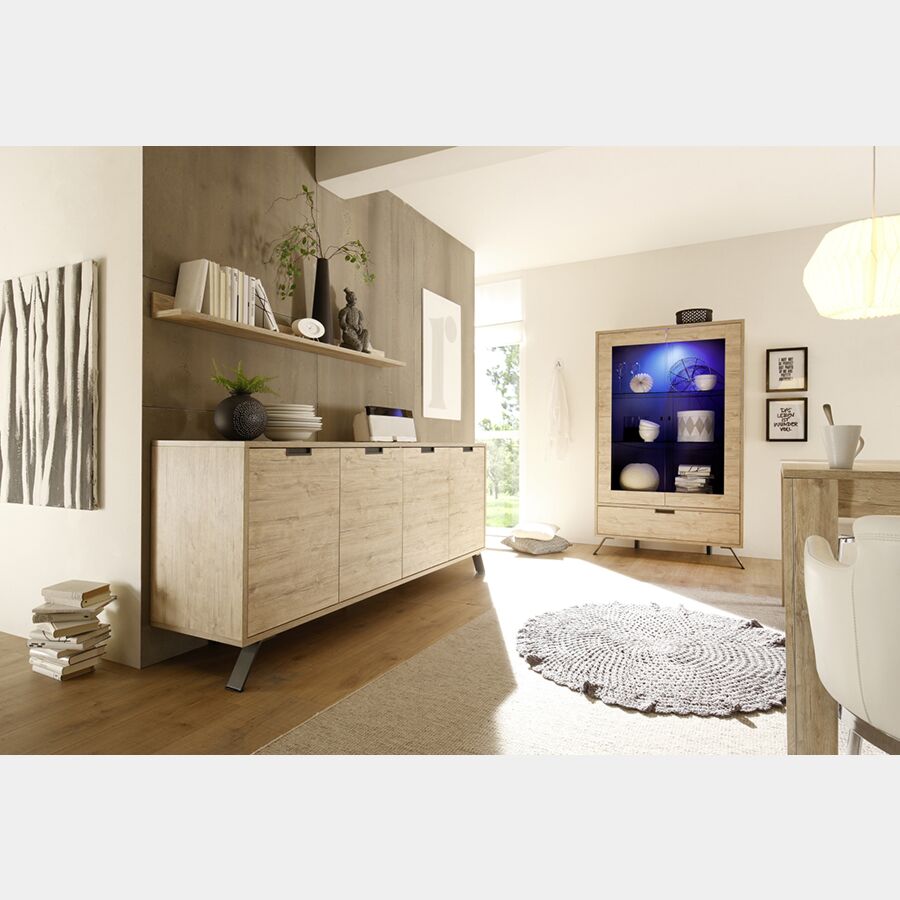 Soggiorno completo "Wood", solo come in foto, in Sherwood Oak, composto da Credenza / Madia a 4 ante e Vetrina 2 ante con cassetto.