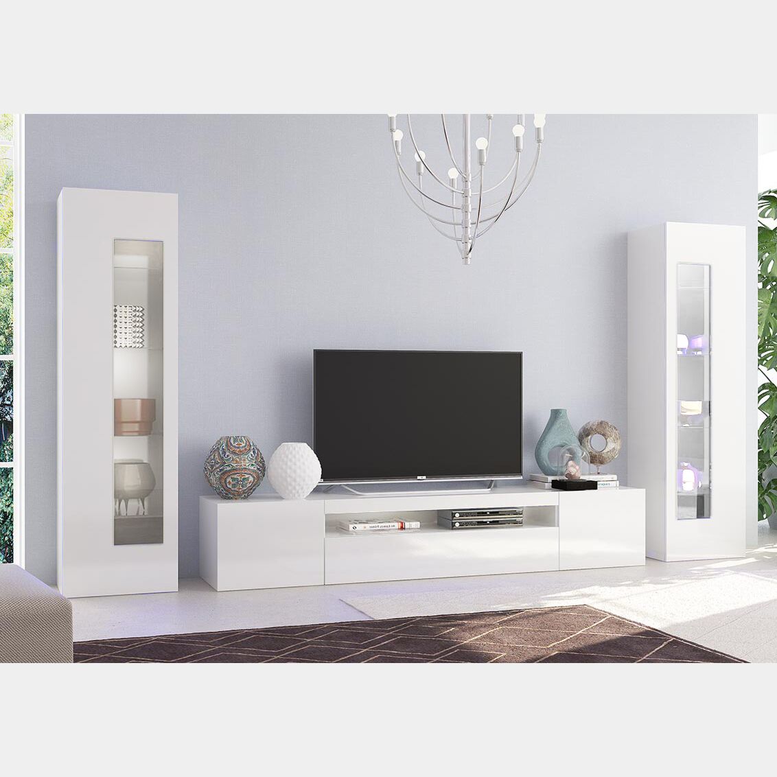 Soggiorno con 2 vetrine e una base porta Tv in finitura Bianco lucido