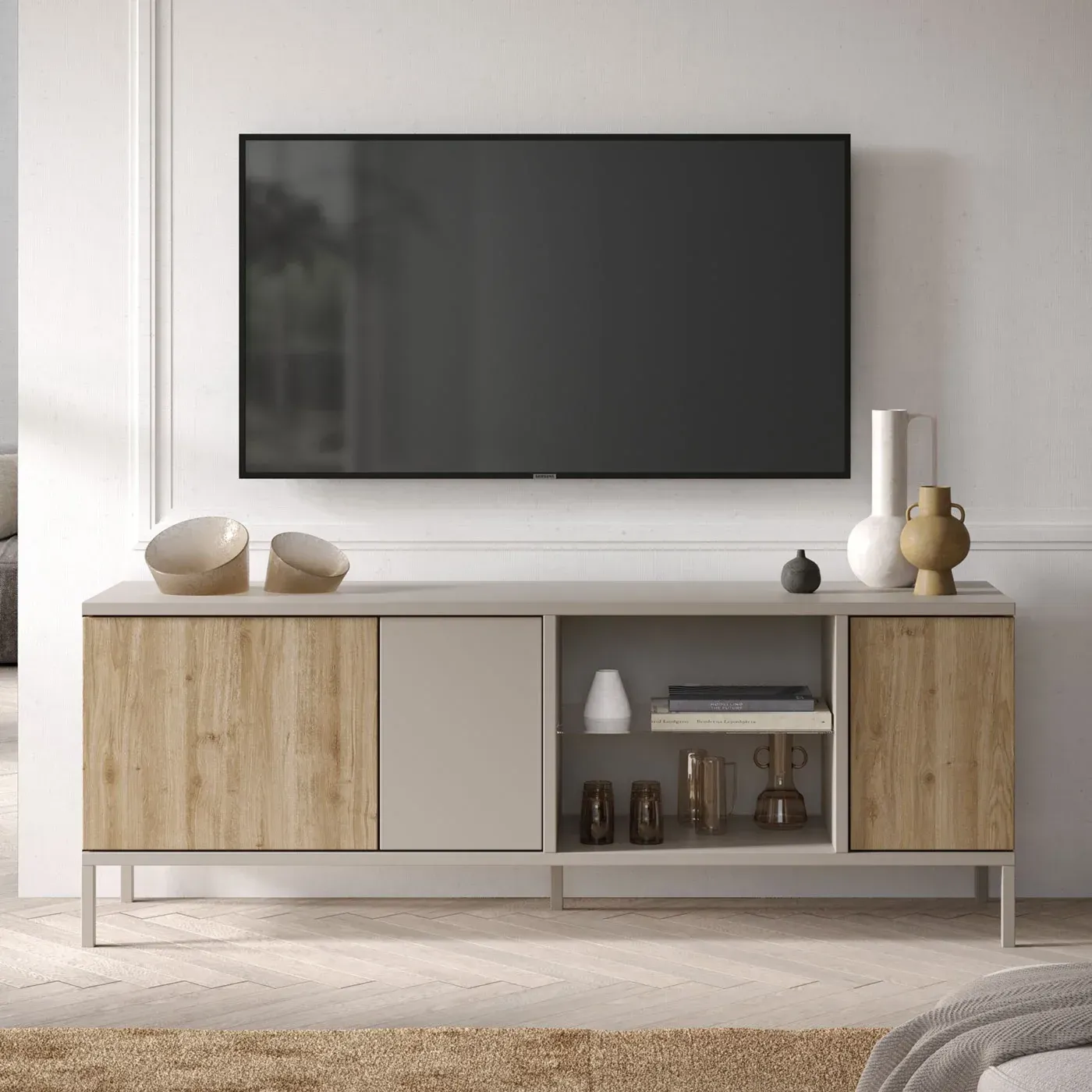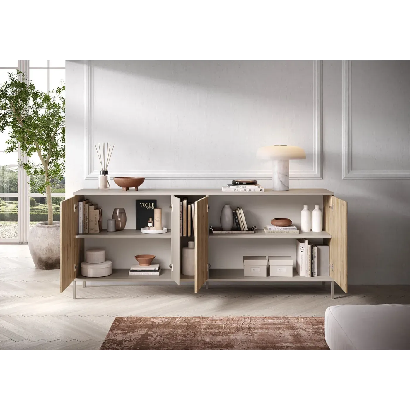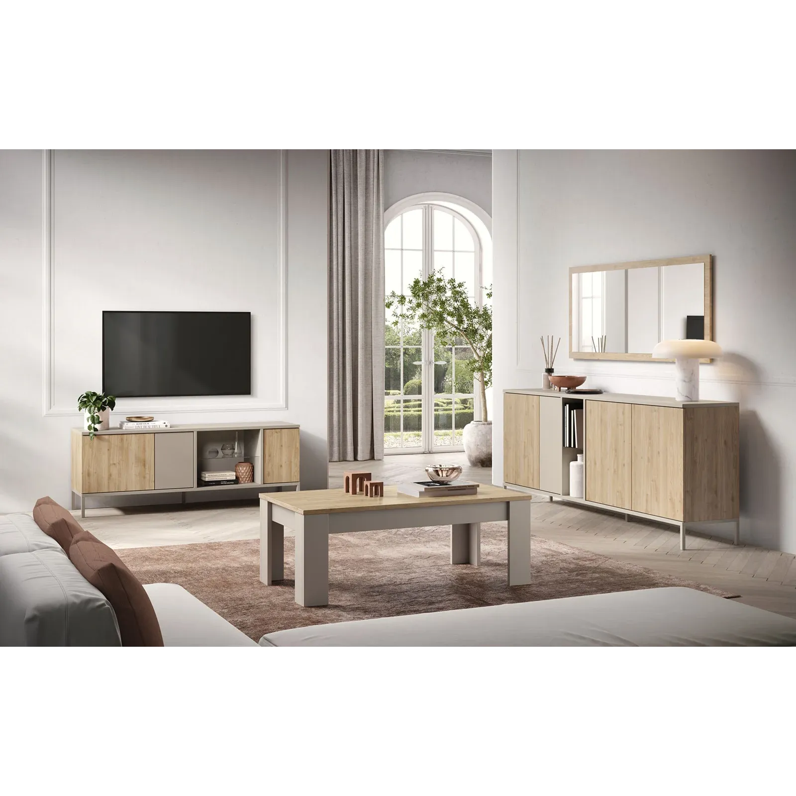 Soggiorno con porta tv, madia e tavolino, Cashmere e Cadiz