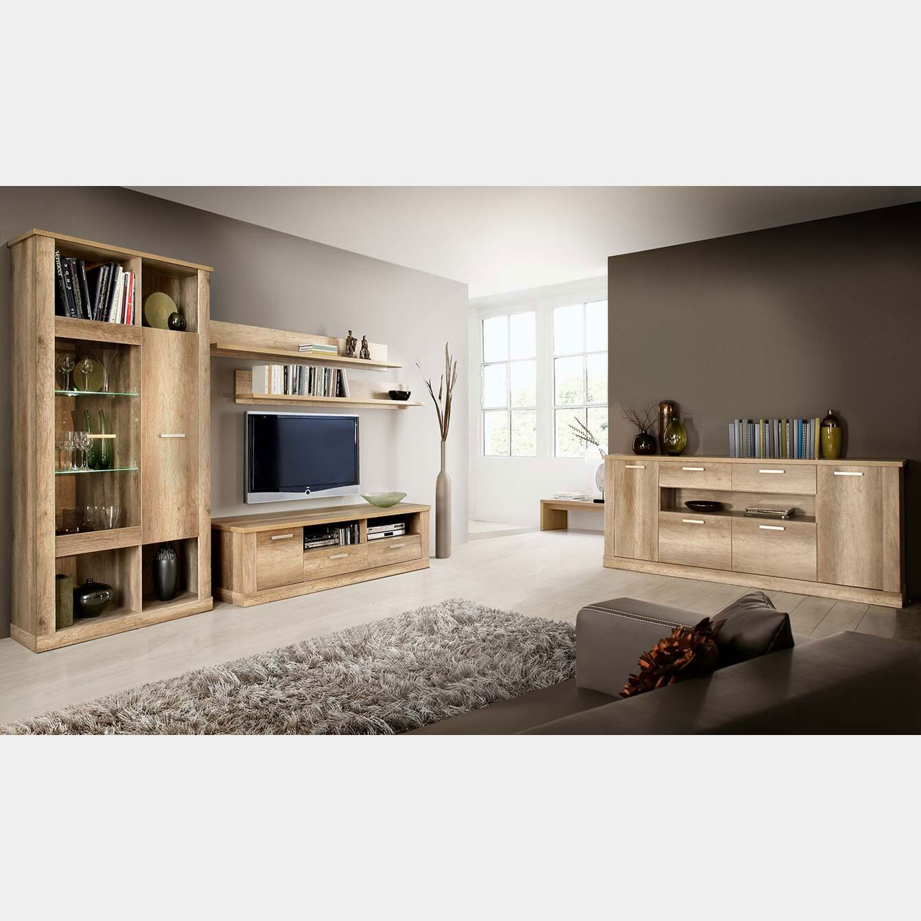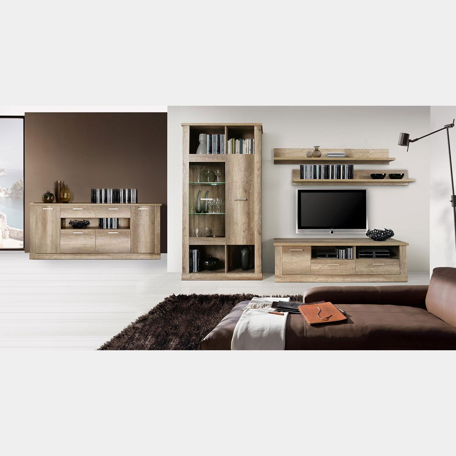 Soggiorno contemporaneo con vetrina, porta tv e madia in Rovere antico