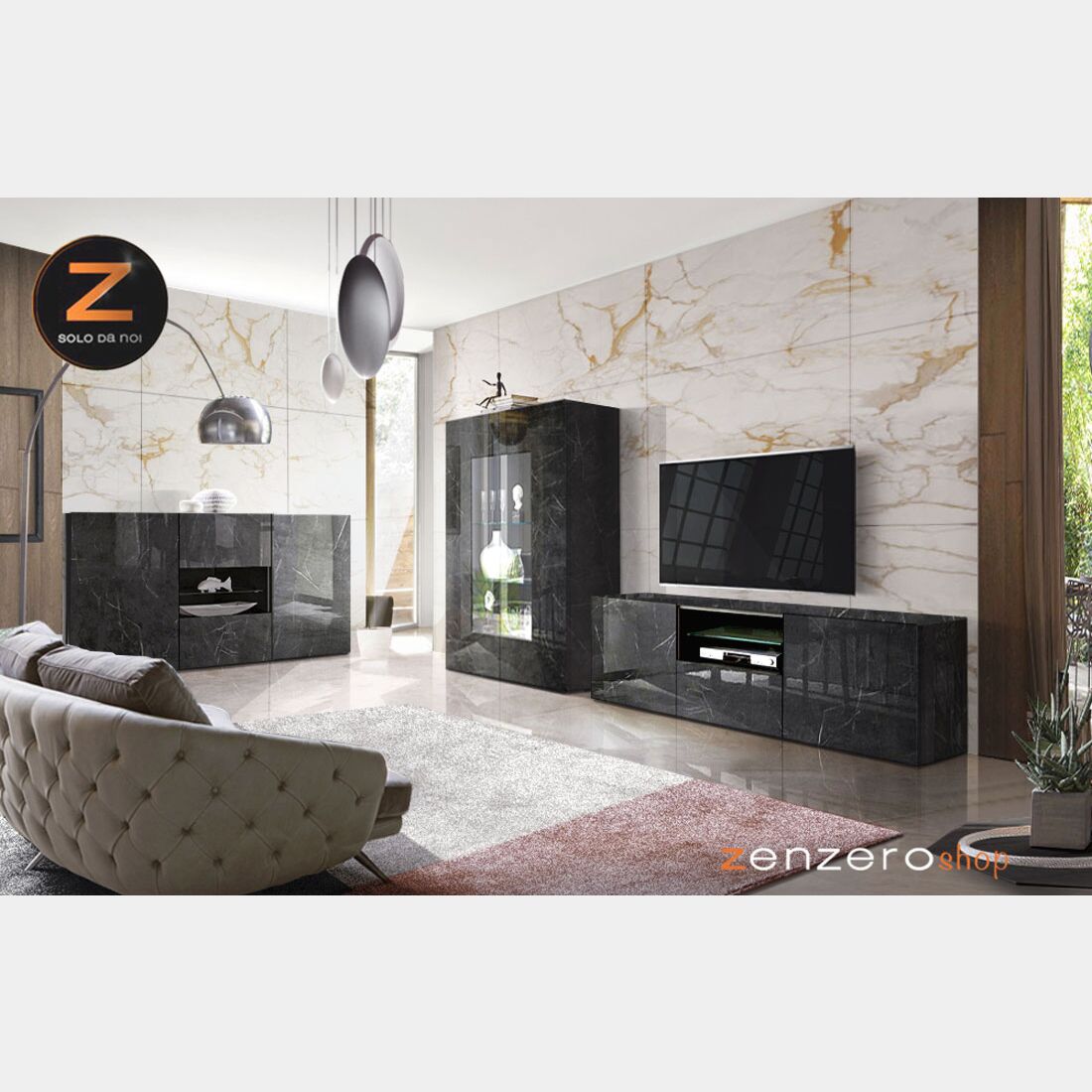 La composizione per soggiorno in finitura effetto marmo nero proposta da ZenzeroShop fa parte della nuova Collezione Diamante.