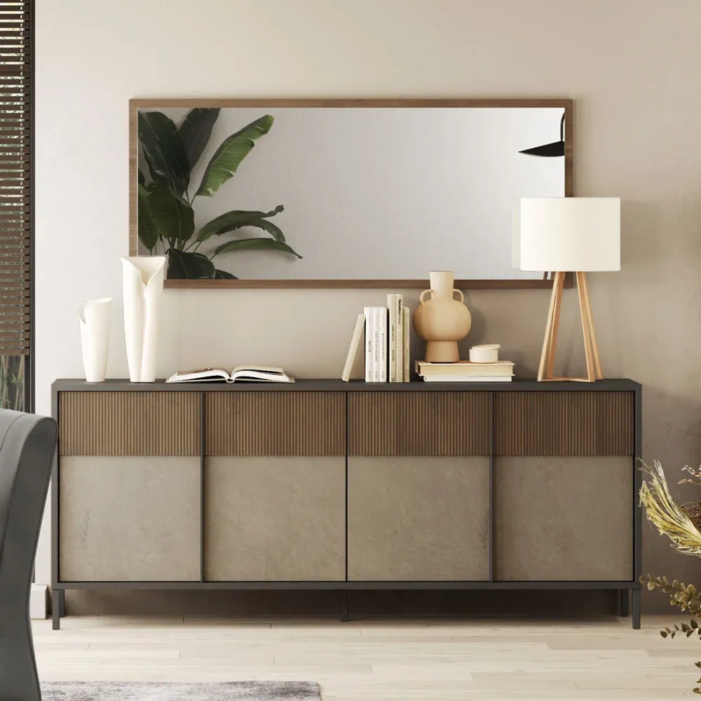 -Una madia a quattro ante molto capiente caratterizzata da ripiani per garantire un facile accesso. La credenza può essere abbellita da un bel soprammobile o da un vaso di fiori.