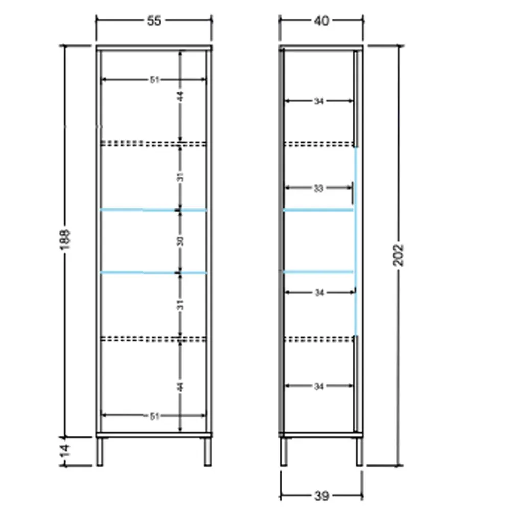 -Vetrina: L. 55 H. 203 P. 40