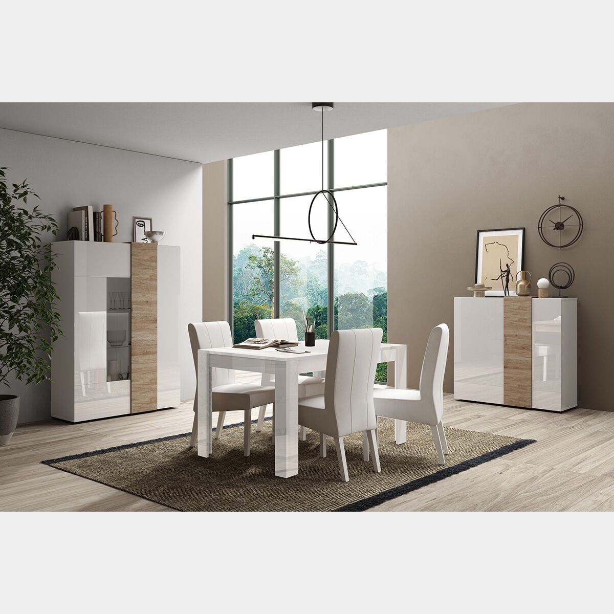 Soggiorno composta da 1 madia,1 vetrina e 1 tavolo, Kadiz e Bianco lucido