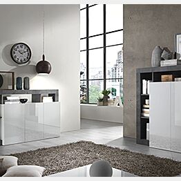 Soggiorno moderno composto da una madia a 3 ante e una madia a 2 ante in finitura bianco  e ossido