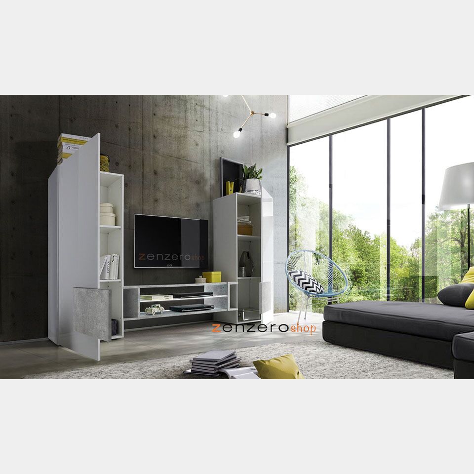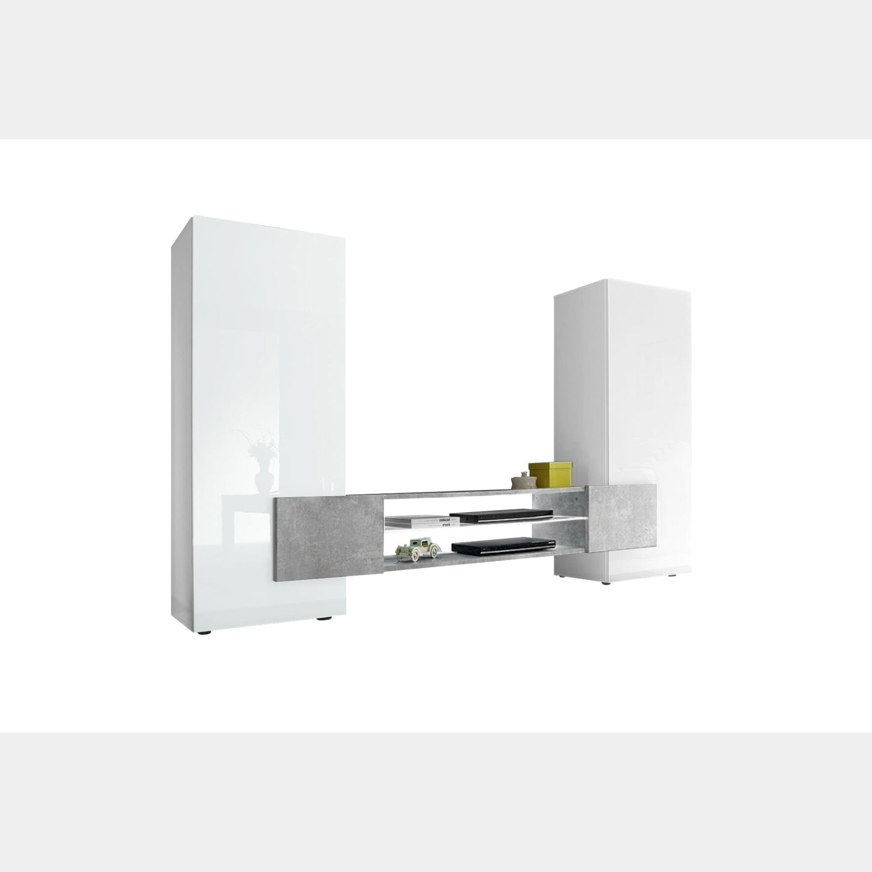 Mobile porta tv, soggiorno moderno Irene Bianco Lucido e Beton