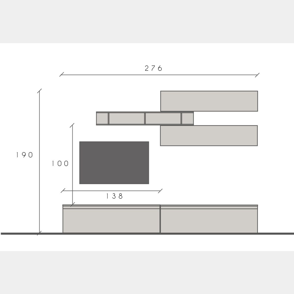 Parete attrezzata 276x40x190 h cm, Ardesia e Piombo, collezione Logica
