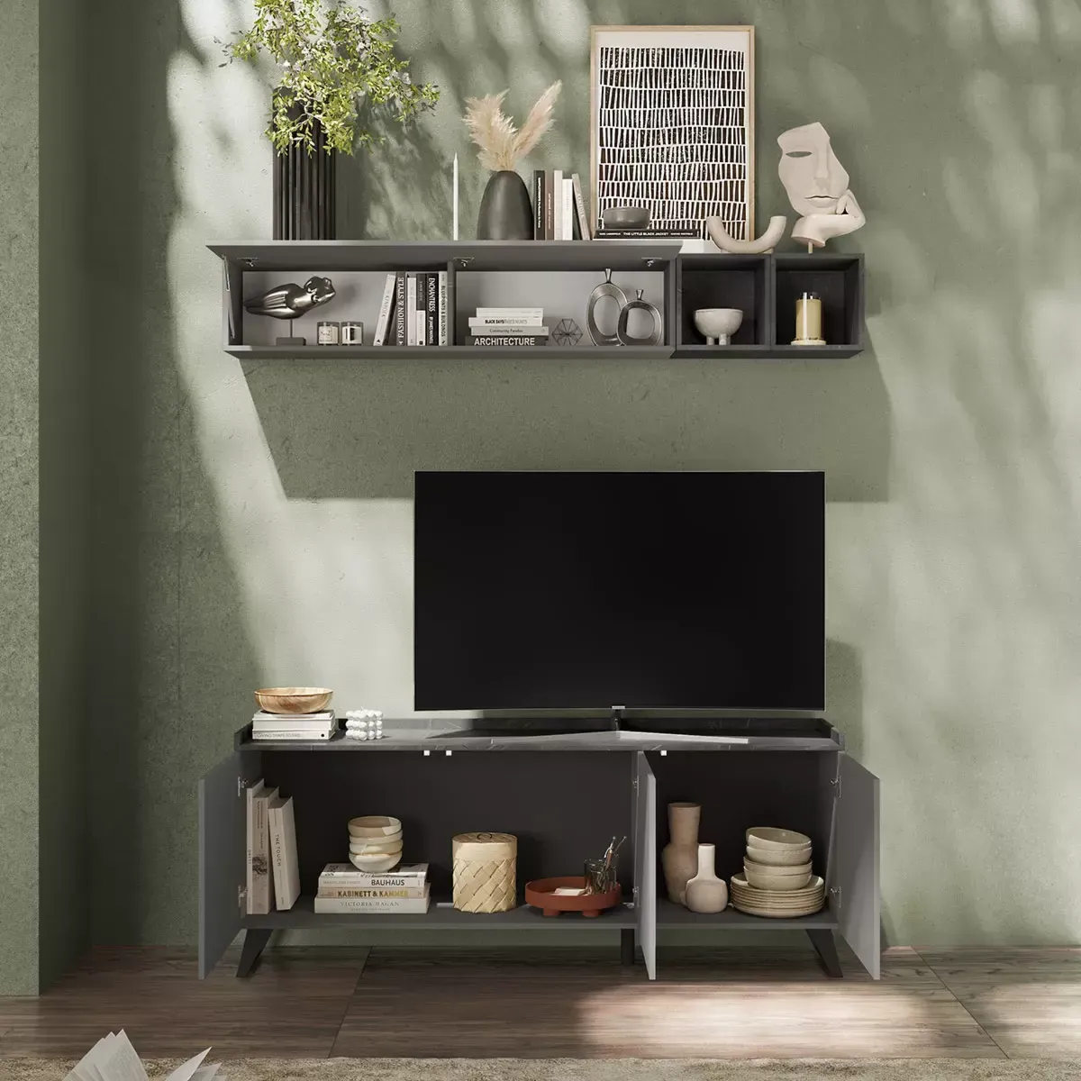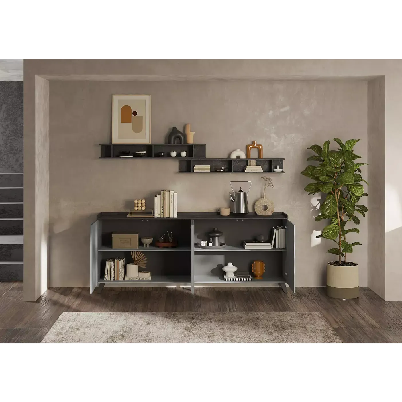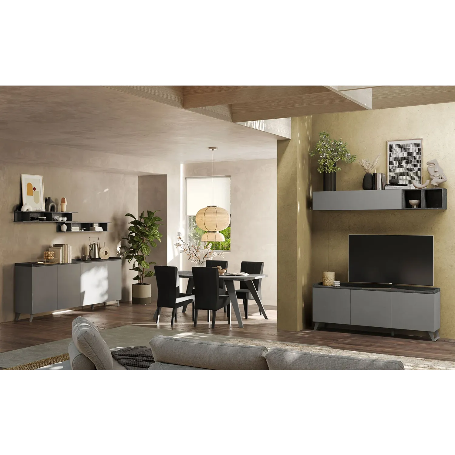 Soggiorno moderno Piombo e Ardesia, con madia, tavolo e porta tv