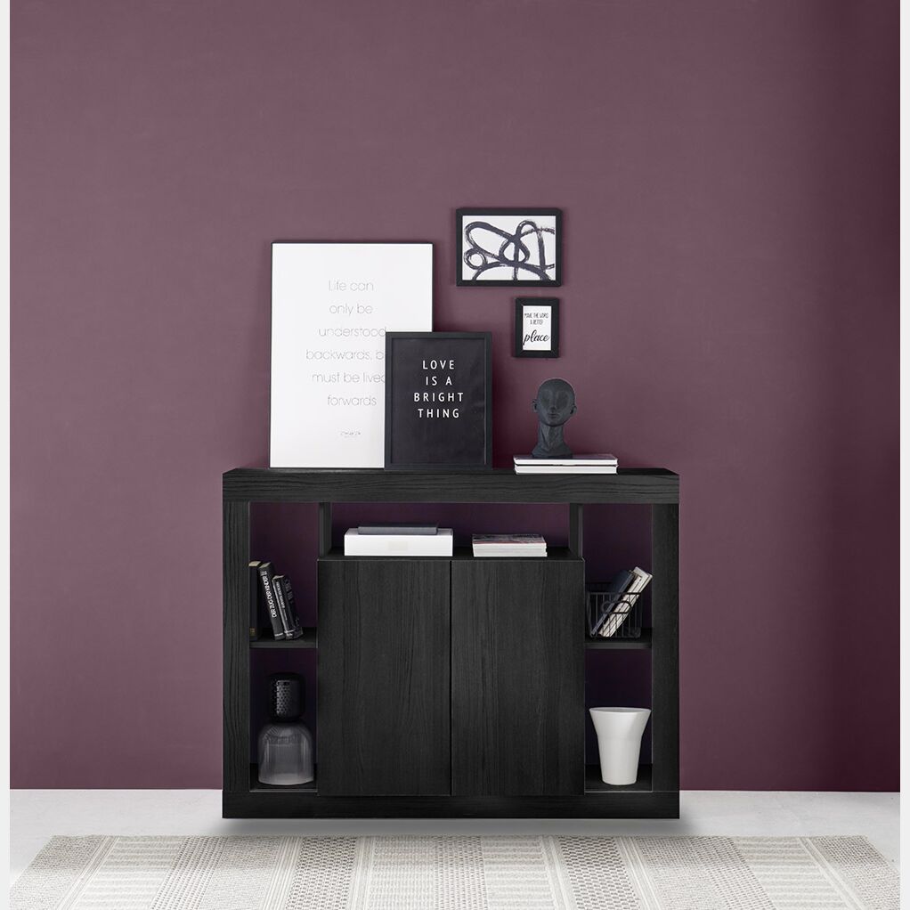 Credenza alta salvaspazio a 2 ante, finitura Nero frassinato effetto legno Made in Italy, è disponibile in 3 diverse finiture.