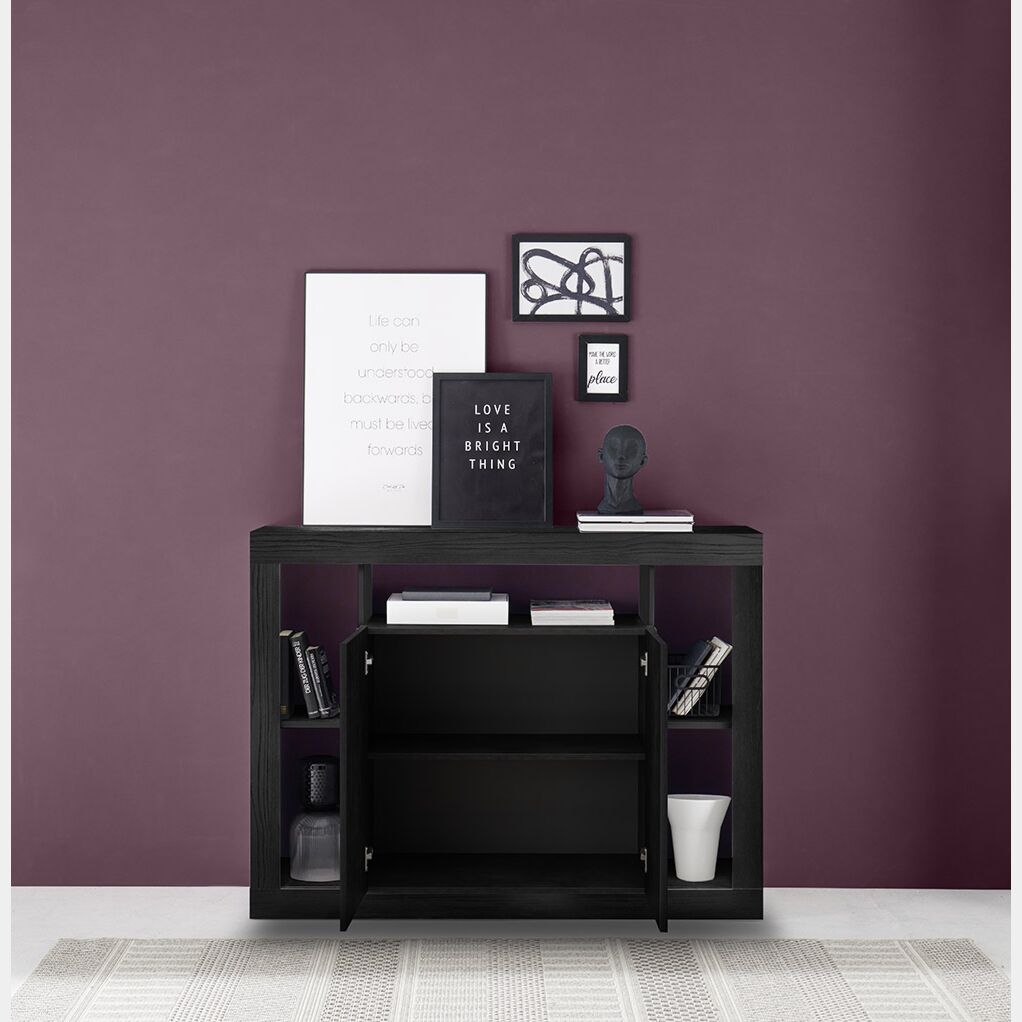 Spaziosa Credenza a 2 ante e 3 cassetti finitura Nero frassinato, prodotto 100% Made in Italy.
