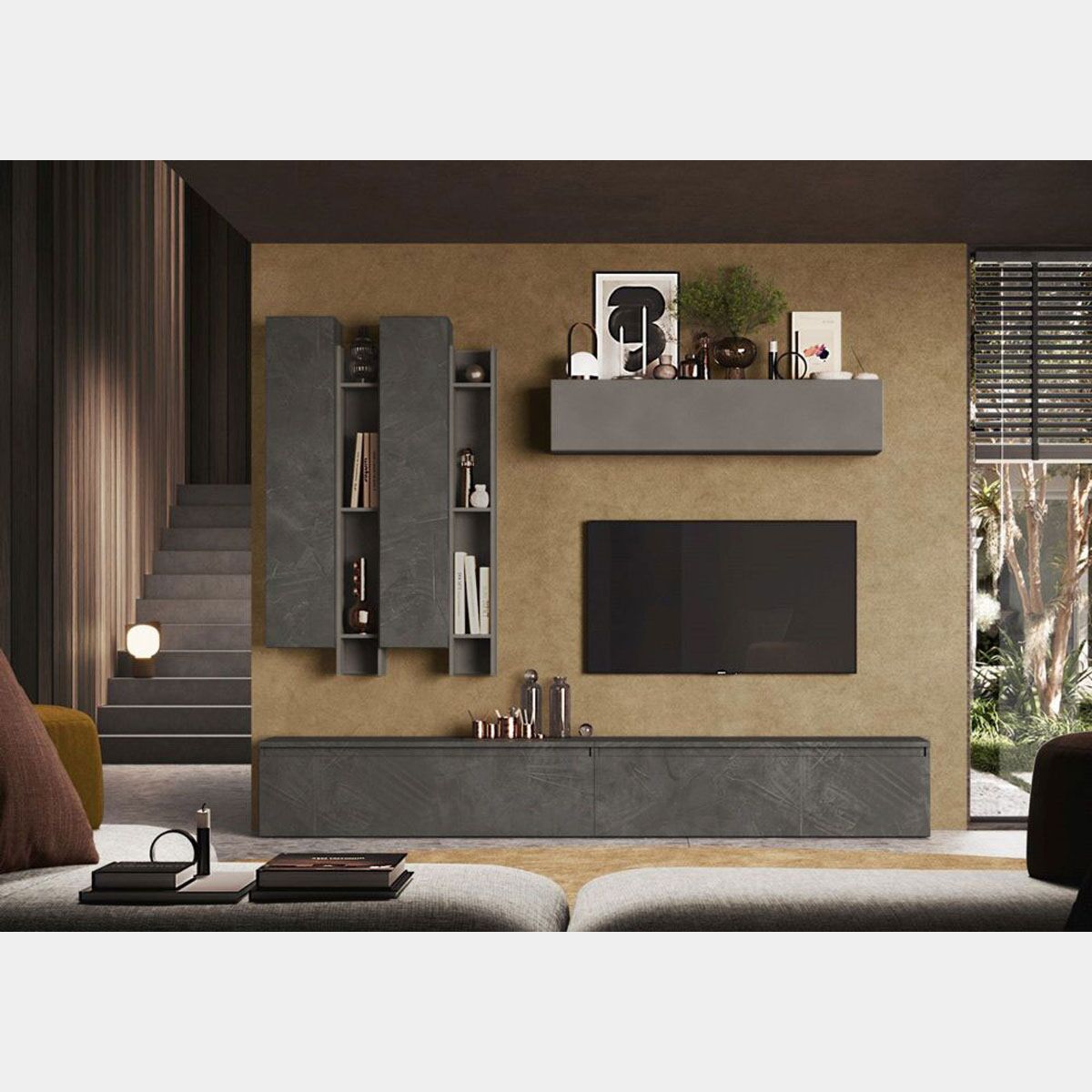 Parete attrezzata 262x210x40 h cm, finitura Piombo e Ardesia, collezione Logica
