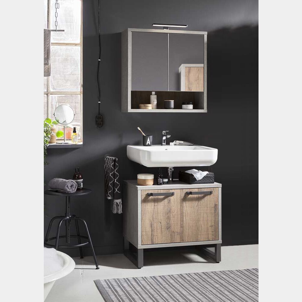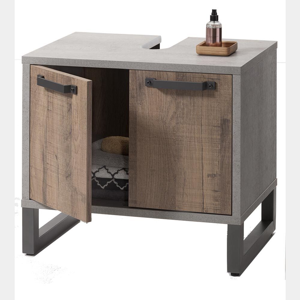 Sottolavello con 2 ante in finitura Cemento e Rovere invecchiato