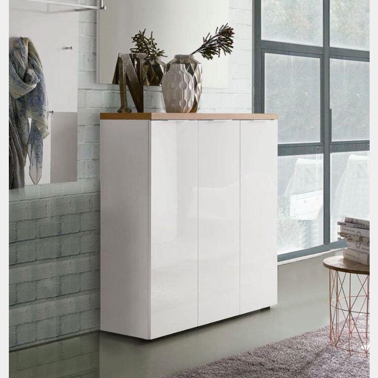 Scarpiera 3 ante, Bianco laccato lucido e Castagno, pronta consegna