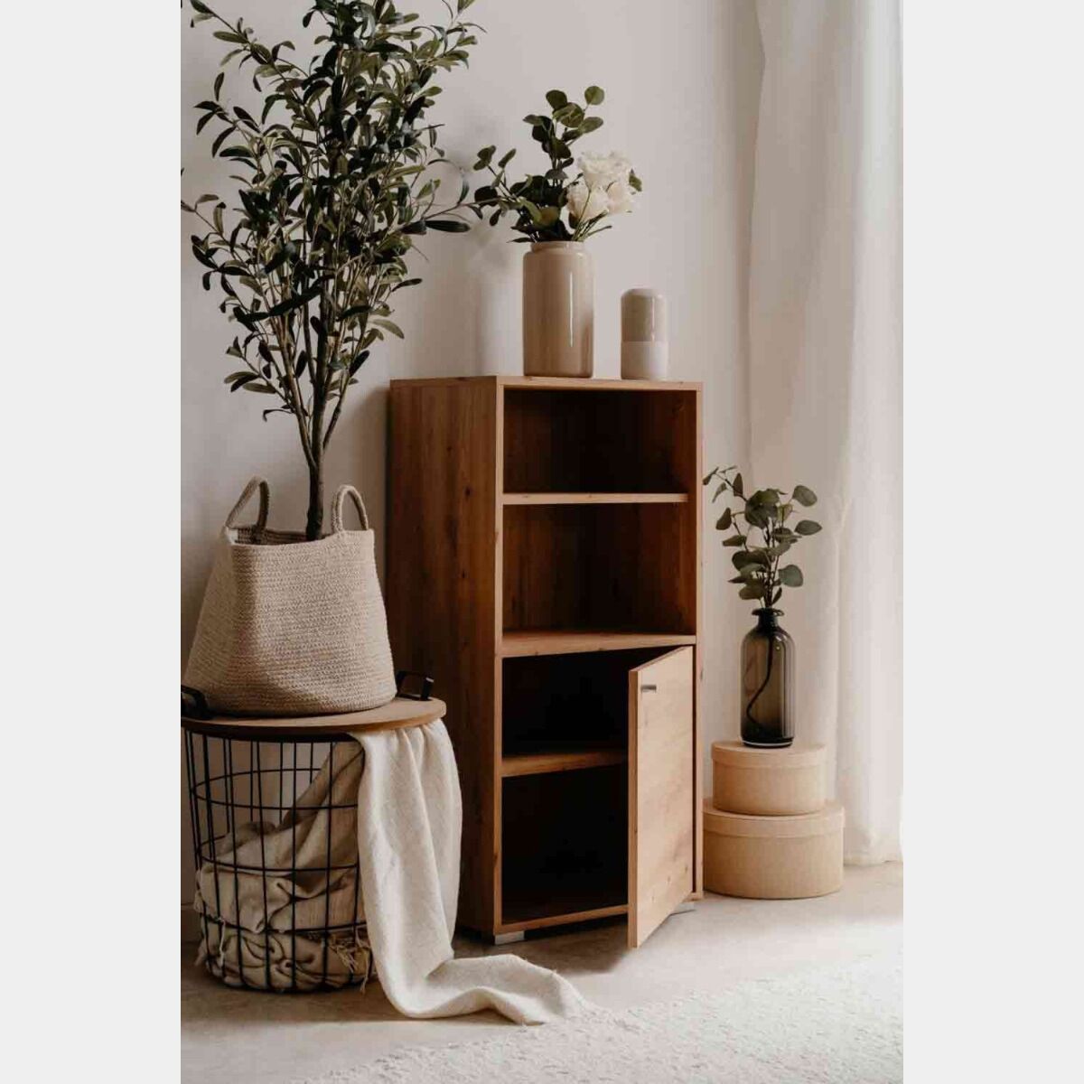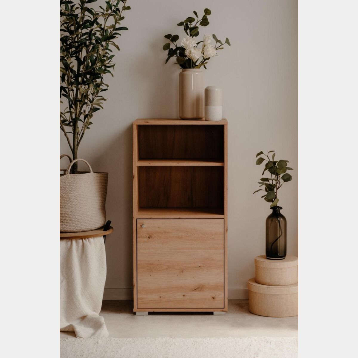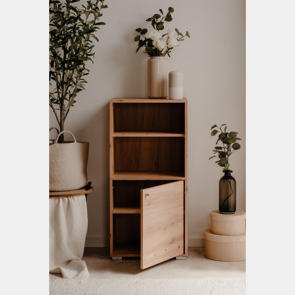 Spazioso Mobile multiuso con un'anta e 3 ripiani, Rovere Oak
